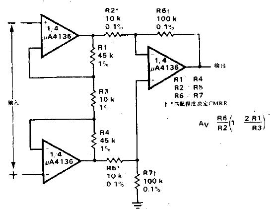 具有高共模抑制比的差分輸入儀器用放大器電路圖