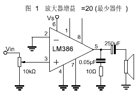 LM386是美國國家半導體公司生產(chǎn)的音頻功率放大器,主要應用于低電壓消費類產(chǎn)品。為使外圍元件最少,電壓增益內(nèi)置為20。但在1腳和8腳之間增加一只外接電阻和電容,便可將電壓增益調(diào)為任意值,直至200
