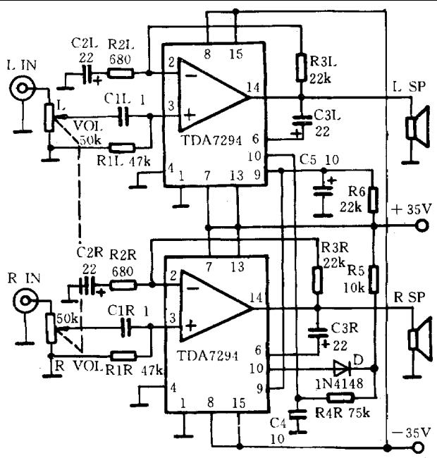 單片音響功放集成電路TDA7294構(gòu)成的100W功率放大器