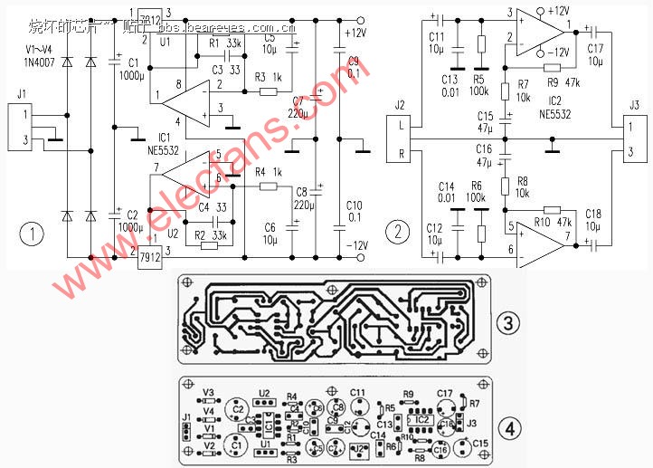 NE5532并聯(lián)輸出耳放電路,NE5532 headphone amplifier