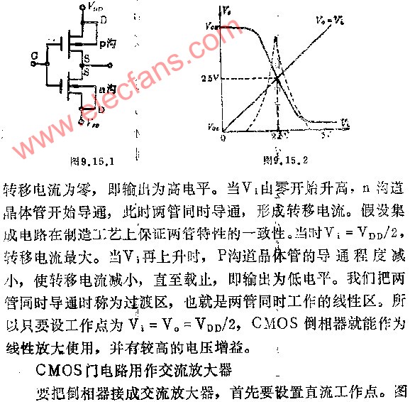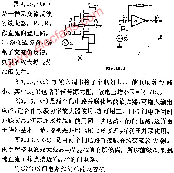 如圖所示是用CMOS非門電路加入負(fù)反饋后組成的線性放大器。圖中A是由一個(gè)非門組成的一級(jí)線性放大器,B所示是