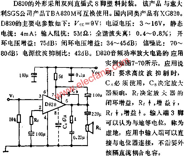 D820音頻功率放大電路應用原理