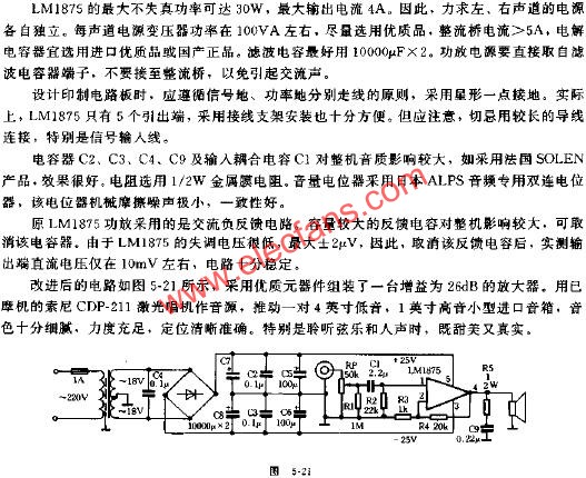美國國家半導(dǎo)體公司(NS)出品的音響功率集成電路LM1875是音色誘人的品種之一,它的輸出功