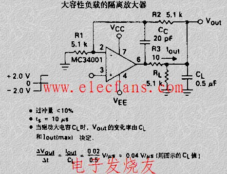 OPA606構(gòu)成的隔離容性負(fù)載的緩沖器