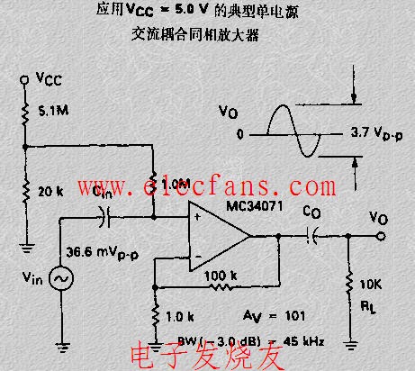 應(yīng)用VCC=5V的典型單電源交流耦合同相放大器