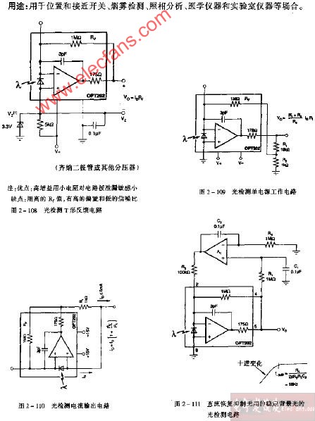 光二極管運(yùn)算放大器 T形反饋電路 光二極管運(yùn)算放大器直接反饋電路 光二極管運(yùn)算放大器差分放大器電路