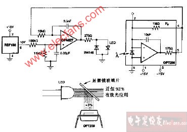 OPT209用光檢測(cè)穩(wěn)定LED輸出電路圖