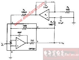 OPT301直流恢復(fù)抑制無用穩(wěn)定背景光的光檢測電路圖