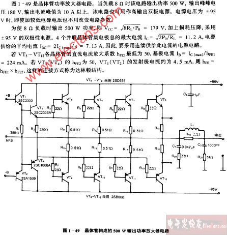 晶體管構(gòu)成的500W輸出功率放大器電路圖