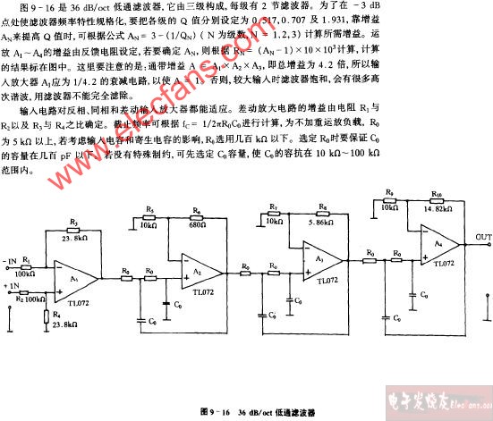 電子發(fā)燒友網>電子技術應用>電路原理圖>放大電路圖>運算放大器電路>36dBoct低通濾波器電路圖