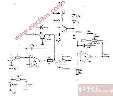 輸入電壓E1為負(fù)時的對數(shù)變換功能電路(對數(shù)放大器4127)