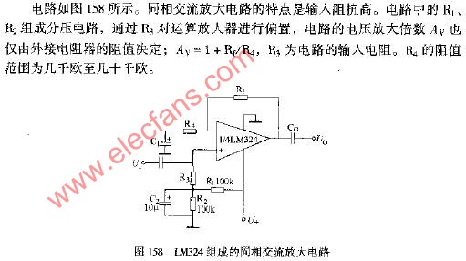 LM324作反相交流放大器 電路見附圖。此放大器可代替晶體管進(jìn)行交流放大,可用
