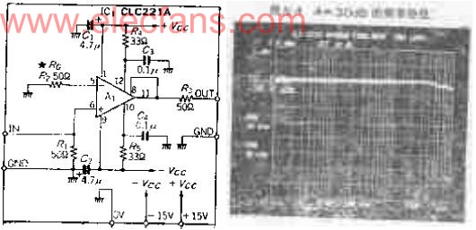 采用CLC221A構(gòu)成的超寬帶直流放大器電路圖
