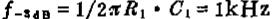 放大低頻用的OP放大器,可以選用普通OP放大器。本電路輸入頻率由R1、C1確定。電路圖中選用的參數(shù)為![]()