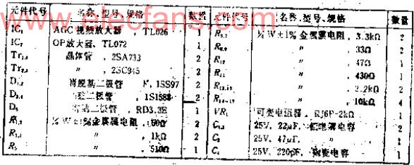 因為整個電路形成ALC環(huán)路,所以元件的選用比較容易,但是產(chǎn)生基準電壓的二極管D5、可變電阻VR1、電阻R12、R13的穩(wěn)定性則是選用元件時應(yīng)重點考慮的問題。為了使二極管D1和D2的正向電壓相等,應(yīng)采用熱耦合。普通小信號開關(guān)二極管,50MHZ時其整流特性會有所下降,所以,應(yīng)選用肖特基二極管。