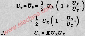 這種乘法器是根據(jù)數(shù)學(xué)關(guān)系設(shè)計(jì)而成的,因此稱(chēng)為1/4平方乘法電路,或稱(chēng)1/4平方乘法器。其