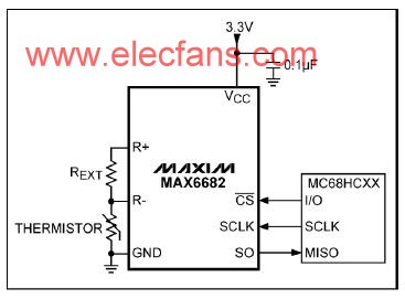 2516 。圖1是一個用熱敏電阻器作傳感器的簡單電路,它的時間周期隨溫度呈線性變化,在高至 30K 的范圍內(nèi),非線性誤差小于 0.1K??梢杂靡粋€頻率計數(shù)器將該周期轉(zhuǎn)換為數(shù)字輸出。對熱敏電阻器的阻值計算有一個按