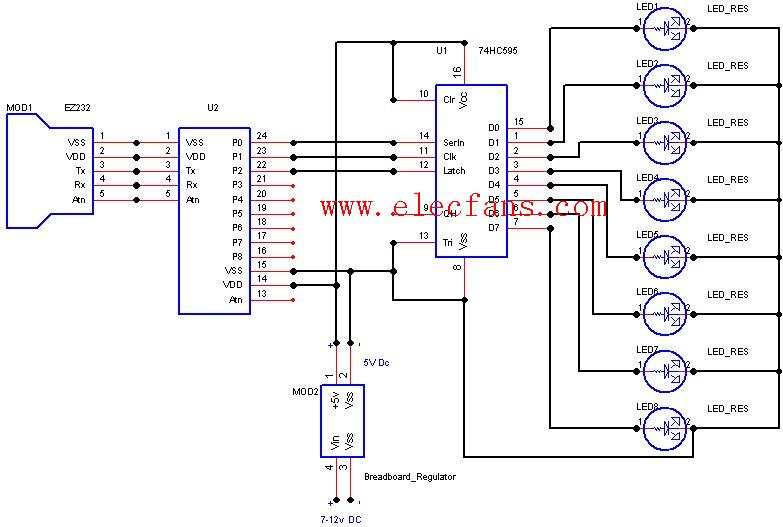 74HC595串入并出芯片應(yīng)用的仿真電路圖免費(fèi)下載
