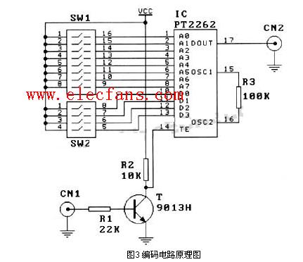 PT2262/2272是一種CMOS工藝制造的低功耗低價(jià)位通用編解碼電路,是目前在無(wú)線通訊電路中作地址編碼識(shí)別最常用的芯片之一。PT2262/2272最多可有12位(A0-A11)三態(tài)地址端管腳(懸空,接