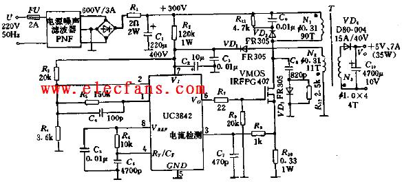 UC3842構(gòu)成的單端反激式開關(guān)電源的實(shí)用電路