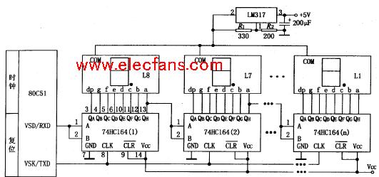 74LS164擴(kuò)展的8位LED串行顯示接口電路
