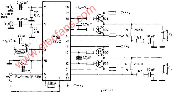 TDA7250立體聲音頻驅(qū)動(dòng)器電路