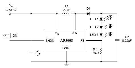 AP3008白光LED驅(qū)動(dòng)器芯片應(yīng)用電路