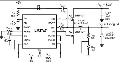 LM2727 用于低輸出電壓的 N 通道 FET 同步降壓穩(wěn)壓器控制器