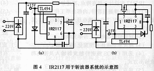 圖3給出了IR2117的典型應(yīng)用電路,圖中的二極管可選用MUR1100。