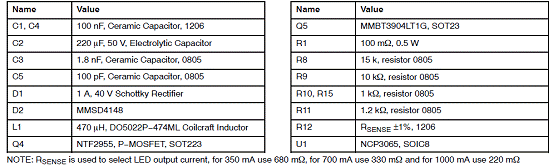 NCP3065升壓演示板應(yīng)用電路材料清單(BOM):