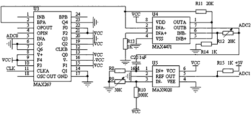 由MAX1403和單片機68HC11組成的接口實際線路如圖5所示。