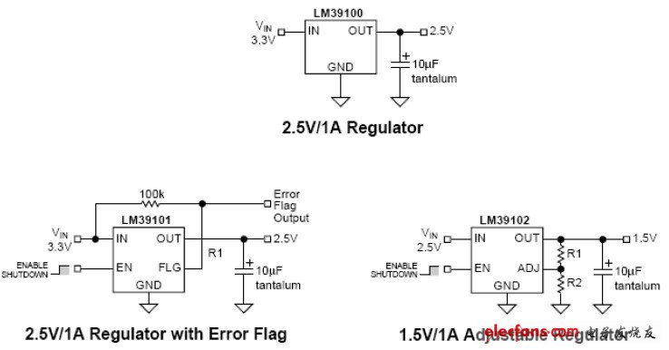 The LM39100, LM39101, and LM39102 are 1A low-dropout linear voltage regulators that provide