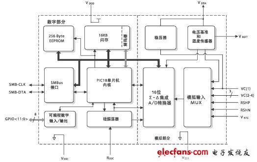 Flash存儲器中固化有所利用PowerSmart開發(fā)的電池管理固件。該固件采用專有算法以及精密的三維電池模型,模型包含250多種參數(shù),并可對自放電、溫度以及其他因素進(jìn)行補(bǔ)償。除此之外,PS501在充/放電周期內(nèi)還執(zhí)行了多項容量校正和減小誤差的操作,以提高精度、 改善電量計和充電控制性能。上述功能可確保實現(xiàn)精確的電池容量報告以及誤差小于1%的實時預(yù)測。閃存的可再編程特性使得在無需改變硅片設(shè)計的前提下,可迅 速實現(xiàn)固件升級并生成用戶版本。PS501可根據(jù)特定應(yīng)用的電池化學(xué)性質(zhì)輕松進(jìn)行用戶定制。