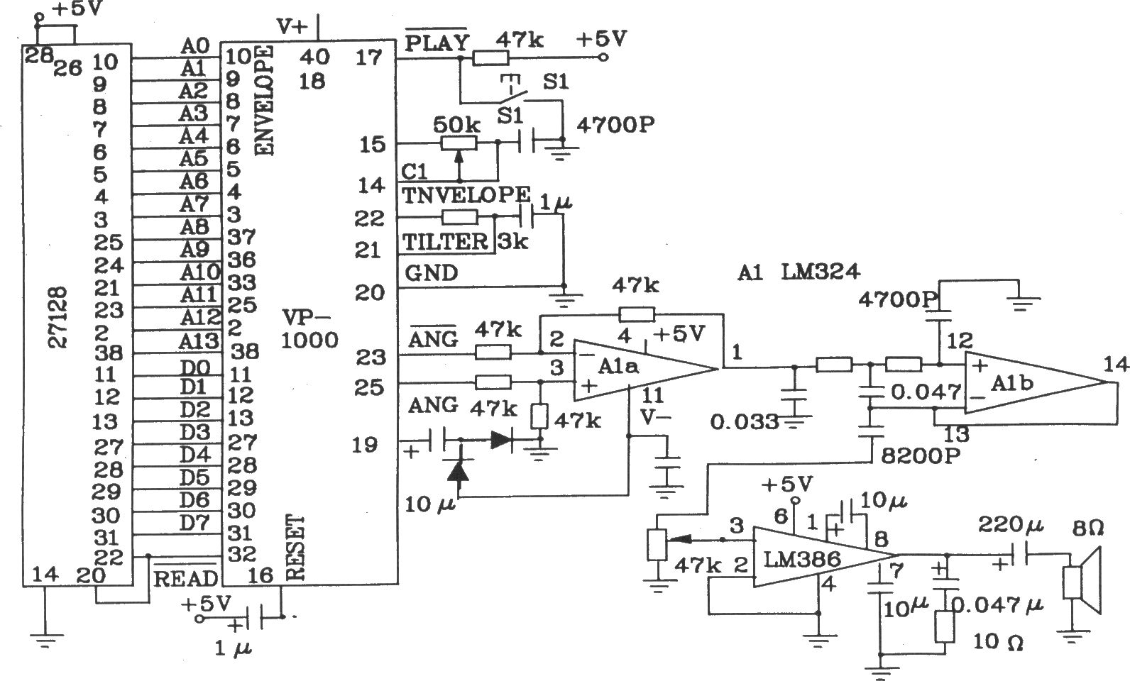 語(yǔ)音合成芯片VP-1000和EEPROM組成的放音電路圖