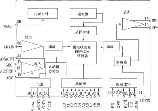 2219 ISD系列語(yǔ)音電路是美國(guó)ISD(InformationStorage Device)公司的專(zhuān)利新產(chǎn)品,該器件打破了傳統(tǒng)的先A/D再D/A模式,而采用獨(dú)特的直接存儲(chǔ)模擬信號(hào)技術(shù),從而大大提高了存儲(chǔ)密度,并且可