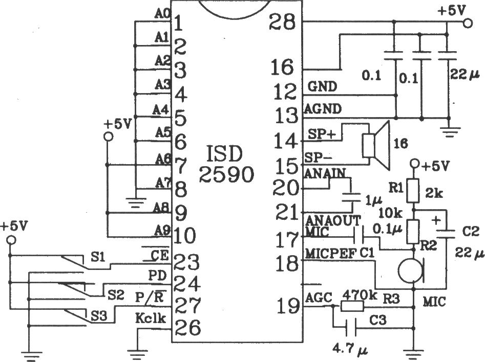 ISD1016A單放音電路圖