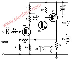 便攜式耳機放大器電路非常容易構(gòu)建,因為它僅使用3個晶體管。便攜式耳機放大器可以直接連接到CD播放器或錄音機。