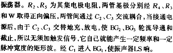 下圖是一種能發(fā)出“叮、咚”聲的門鈴的電原理圖。它是利用一塊時(shí)基電路集成塊和外圍元件組成的。它的音質(zhì)優(yōu)美逼真,裝調(diào)