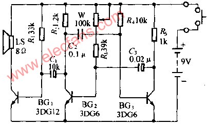 該電子門鈴用1.5V直流供電,具有體積小、耗電少、聲音柔和、不受交流電網(wǎng)停電影響、安全可靠和經(jīng)濟(jì)實(shí)用