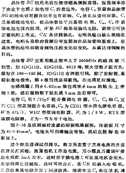 674 不少晶體管收音機(jī)都不帶拾音插孔,因此不能欣賞唱片,采用電唱機(jī)調(diào)幅轉(zhuǎn)發(fā)器即可解決這一矛盾.電唱機(jī)調(diào)幅轉(zhuǎn)