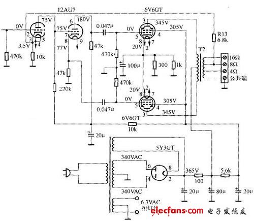 用6v6gt膽機(jī)制作的推挽功率放大器電路圖