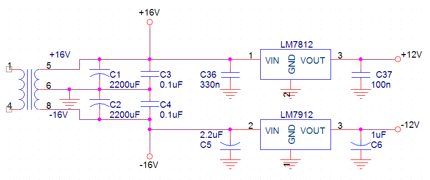 正負12V轉(zhuǎn)正負5V線性穩(wěn)壓電路制作,12v -5v power regulator