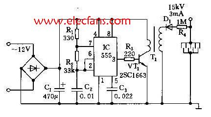 用NE555制作的高壓靜電發(fā)生器電路圖
