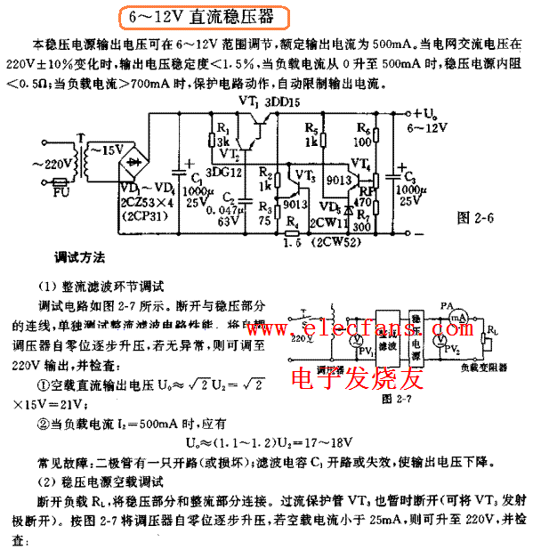 6--12V直流穩(wěn)壓器:可在6到12V范圍可調(diào)。