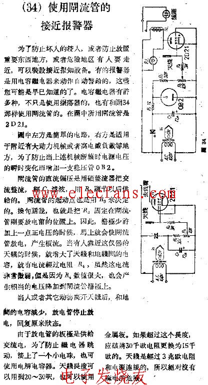電子發(fā)燒友網(wǎng)>電子技術(shù)應(yīng)用>電路原理圖>電源>電源電路圖>使用閘流管的接近報(bào)警器電路
