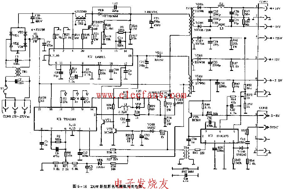 湯姆遜TFE5114彩色電視機開關(guān)電源電路圖