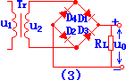 三:?jiǎn)蜗驑蚴秸麟娐?br> 它的電路圖如(3)所示:我們采用橋式整流電路時(shí)只需要一個(gè)次級(jí)繞組,這就克服了全波整流電路的缺點(diǎn)。 |