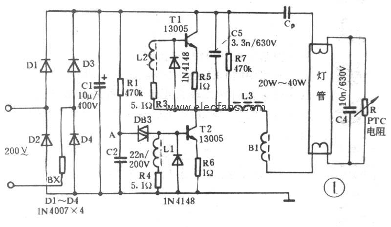 20W的日光燈電路圖(220V電子鎮(zhèn)流器電路圖),Ballast circuit
