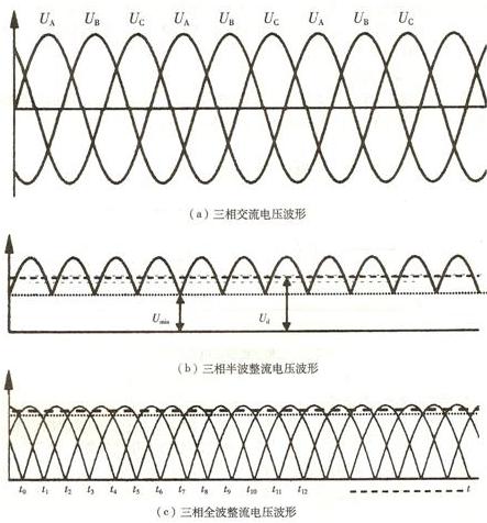 4480 在電路中,當(dāng)功率進(jìn)一步增加或由于其他原因要求多相整流時(shí),三相整流電路就被提了出來。圖所示就是三相半波整流電路原理圖。在這個(gè)電路中,三相中的每一相都單獨(dú)形成了半波整流電路,其整流出的三個(gè)電壓半波在時(shí)間