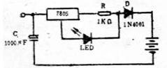 得到了保護。本電路適于充電電流小于50mA。4.穩(wěn)壓集成電路充電電路由于穩(wěn)壓集成電路的問世,用穩(wěn)壓集成電路制作的充電電路也隨之出現(xiàn),下圖是用7805集成電路接成的恒流充電電路。圖中的發(fā)光二極管LED,作